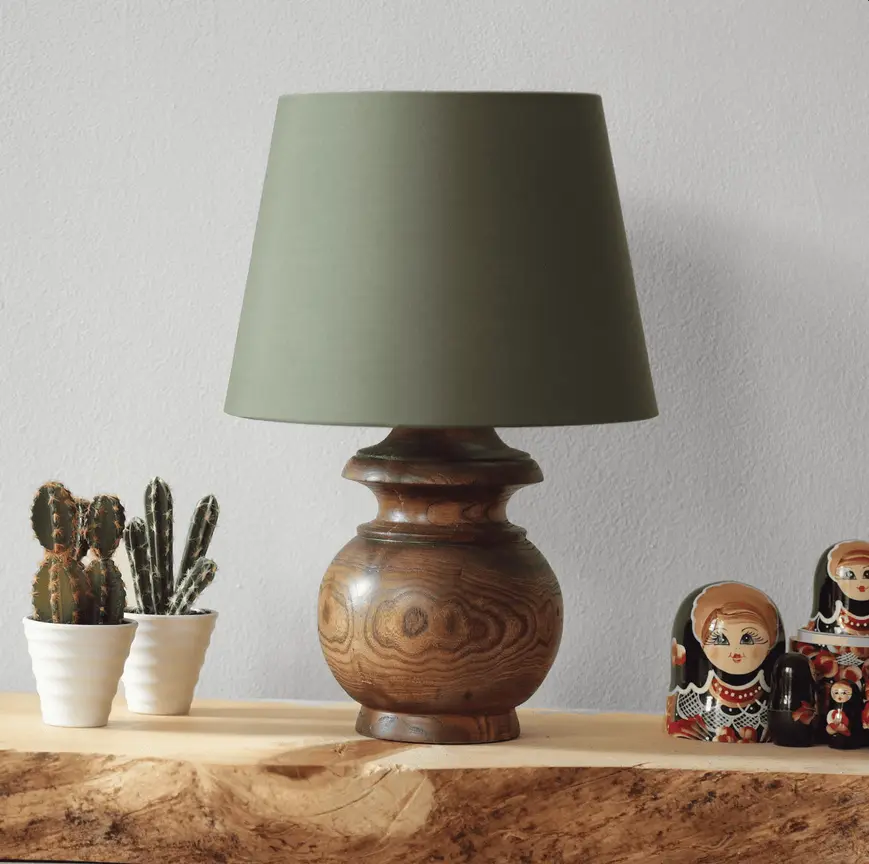 آباژور رومیزی چوبی پایه گلدانی شید پارچه