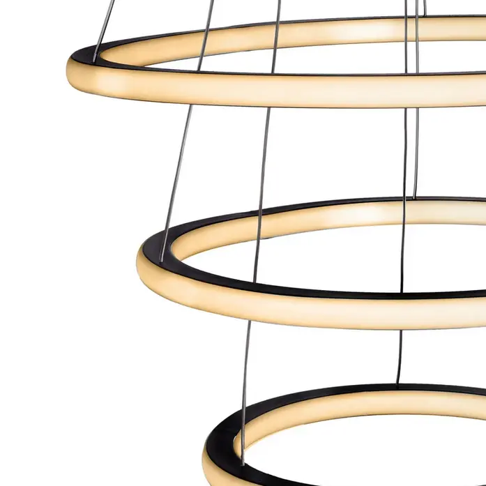 - این لوستر مدرن با طراحی سه حلقه نورپردازی دوگانه حلقهها ( با نوار SMDهای داخلی و بیرونی)